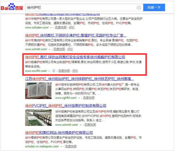 關(guān)鍵詞“徐州護(hù)欄”百度排名。