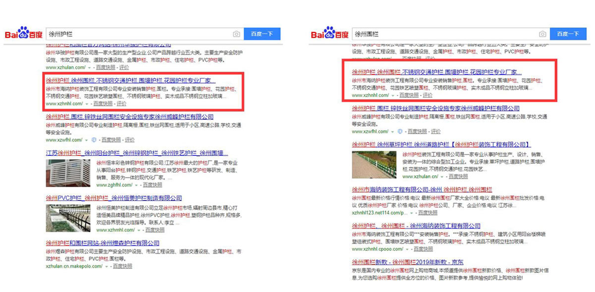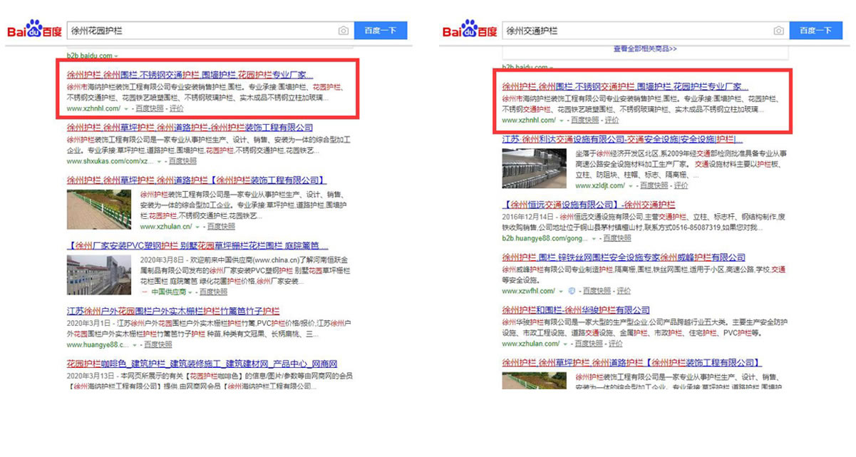 徐州海納護欄工關鍵詞排名效果