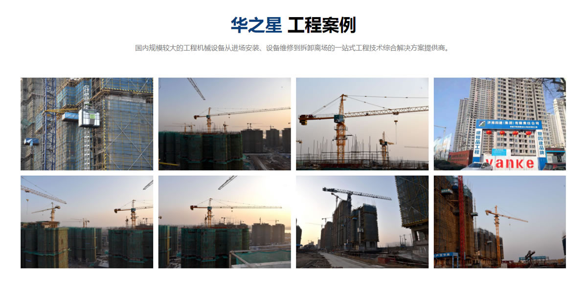 徐州華之星起重設(shè)備有限公司專業(yè)致力于建筑工程、能源工程、交通工程等國(guó)家和地方重點(diǎn)基礎(chǔ)設(shè)施建設(shè)所需工程機(jī)械設(shè)備的租賃、安拆、維修、勞務(wù)等業(yè)務(wù),是國(guó)內(nèi)規(guī)模較大的工程機(jī)械設(shè)備綜合解決方案提供商,提供進(jìn)場(chǎng)安裝、設(shè)備維修到拆卸離場(chǎng)的一站式工程技術(shù)支持。現(xiàn)擁有各種型號(hào)塔式起重300余臺(tái),施工電梯80臺(tái)。