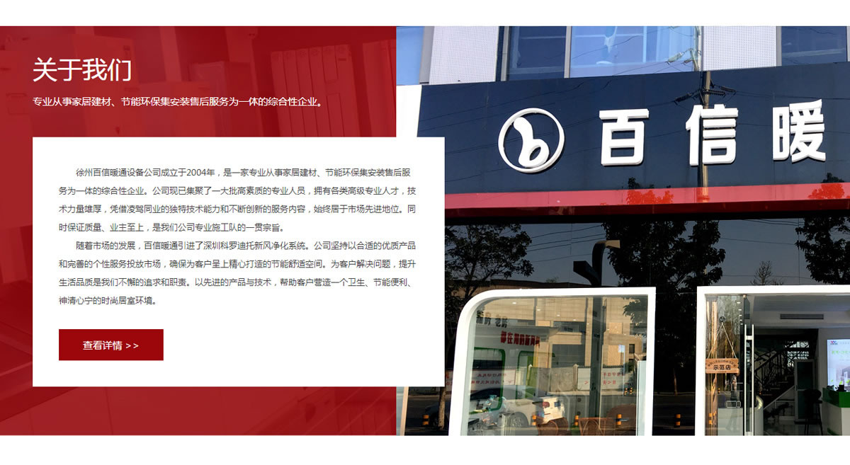 徐州百信暖通設備公司是一家專業從事家居建材、節能環保集安裝售后服務為一體的綜合性企業。隨著市場的發展,百信暖通引進了深圳科羅迪托新風凈化系統。公司堅持以合適的優質產品和完善的個性服務投放市場,確保為客戶呈上精心打造的節能舒適空間。