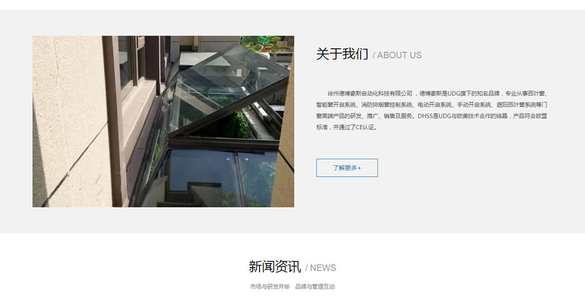 徐州德博豪斯自動化科技有限公司 ,德博豪斯是UDG旗下的知名品牌,專業從事百葉窗、智能窗開啟系統、消防排煙窗控制系統、電動開啟系統、手動開啟系統、遮陽百葉窗系統等門窗高端產品的研發、推廣、銷售及服務。DHSS是UDG與歐美技術合作的結晶,產品符合歐盟標準,并通過了CE認證。